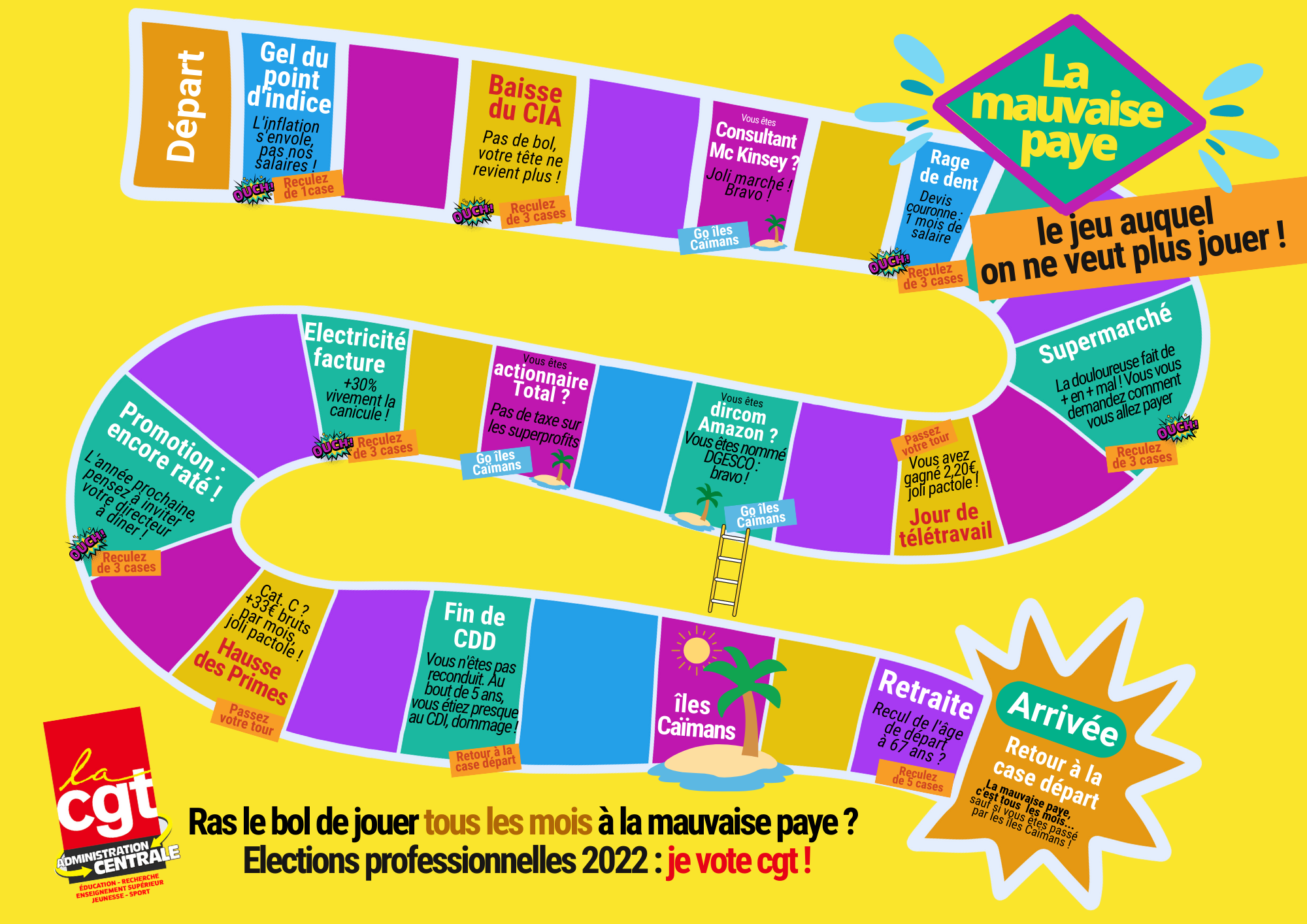 Du 1er au 8 décembre 2022 auront lieu les élections professionnelles dans toute la fonction publique et aussi notre administration centrale au MENJ / MESR / MSJOP. En 2014 puis 2018, vous avez placé la CGT en tête des élections professionnelles à l’administration centrale. Quand vous êtes en difficulté dans votre travail, c’est vers nous que vous vous tournez. Au niveau national, c’est la CGT qui porte haut et fort vos revendications. Parce que nous sommes toujours à vos côtés, cette année encore choisissez la CGT !