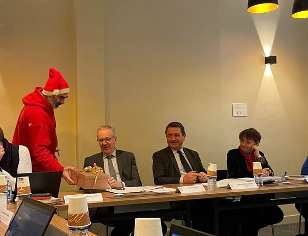 A l’occasion du CSA du 18 décembre, l’intersyndicale a maintenu la pression sur l’administration dans le processus de regroupement du site unique avec une action originale et dans l’esprit de Noël. Elle a convoqué le Père-Noël pour offrir un petit cadeau très particulier au secrétaire général :
